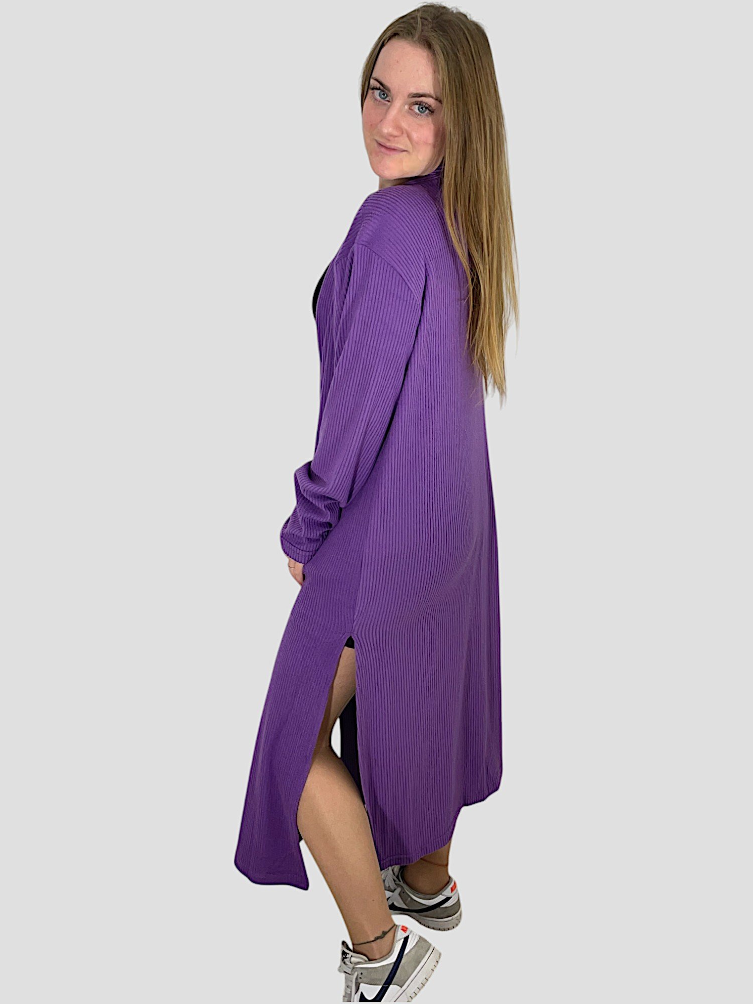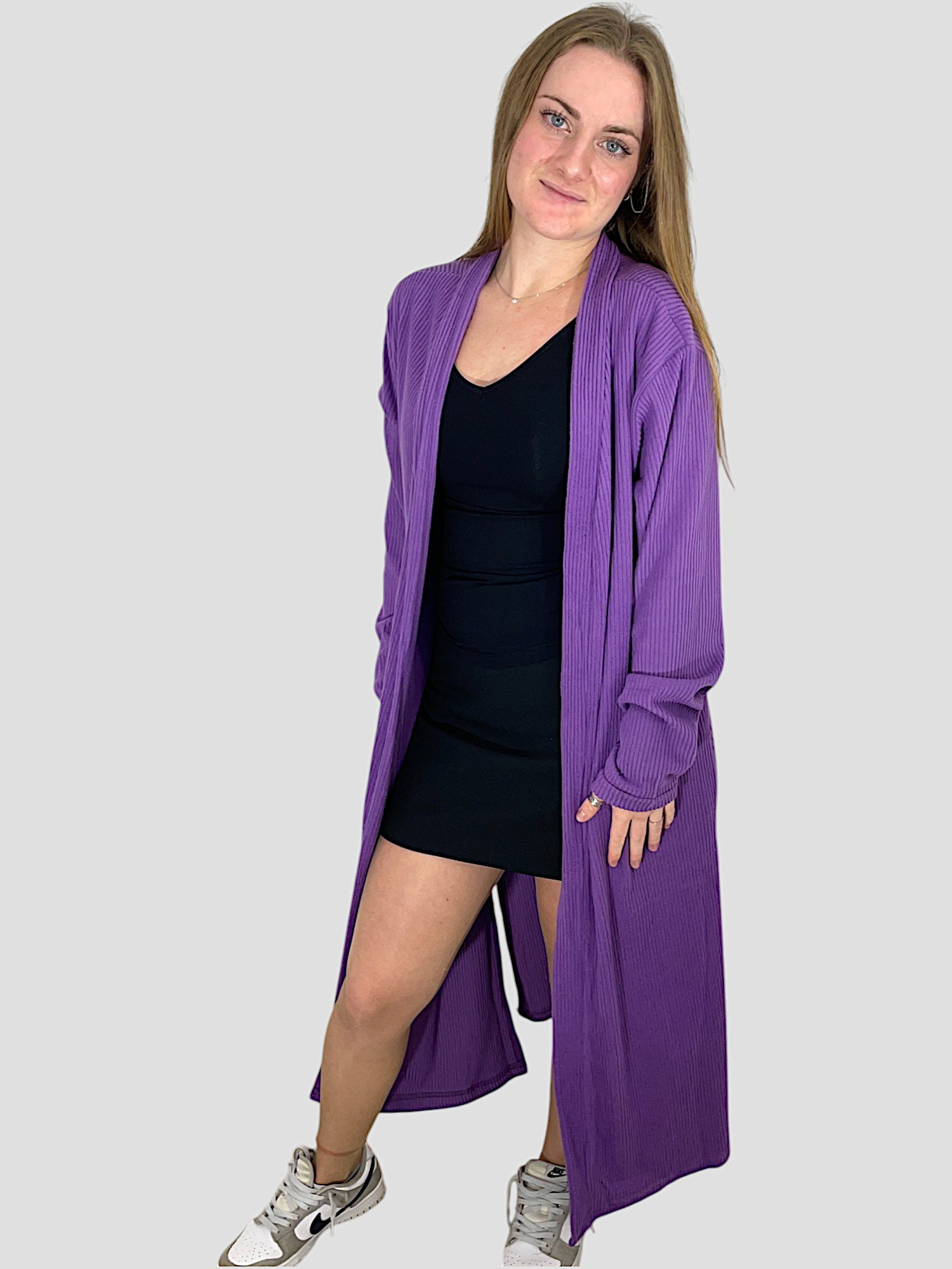 Cardigan long ample ouvert.