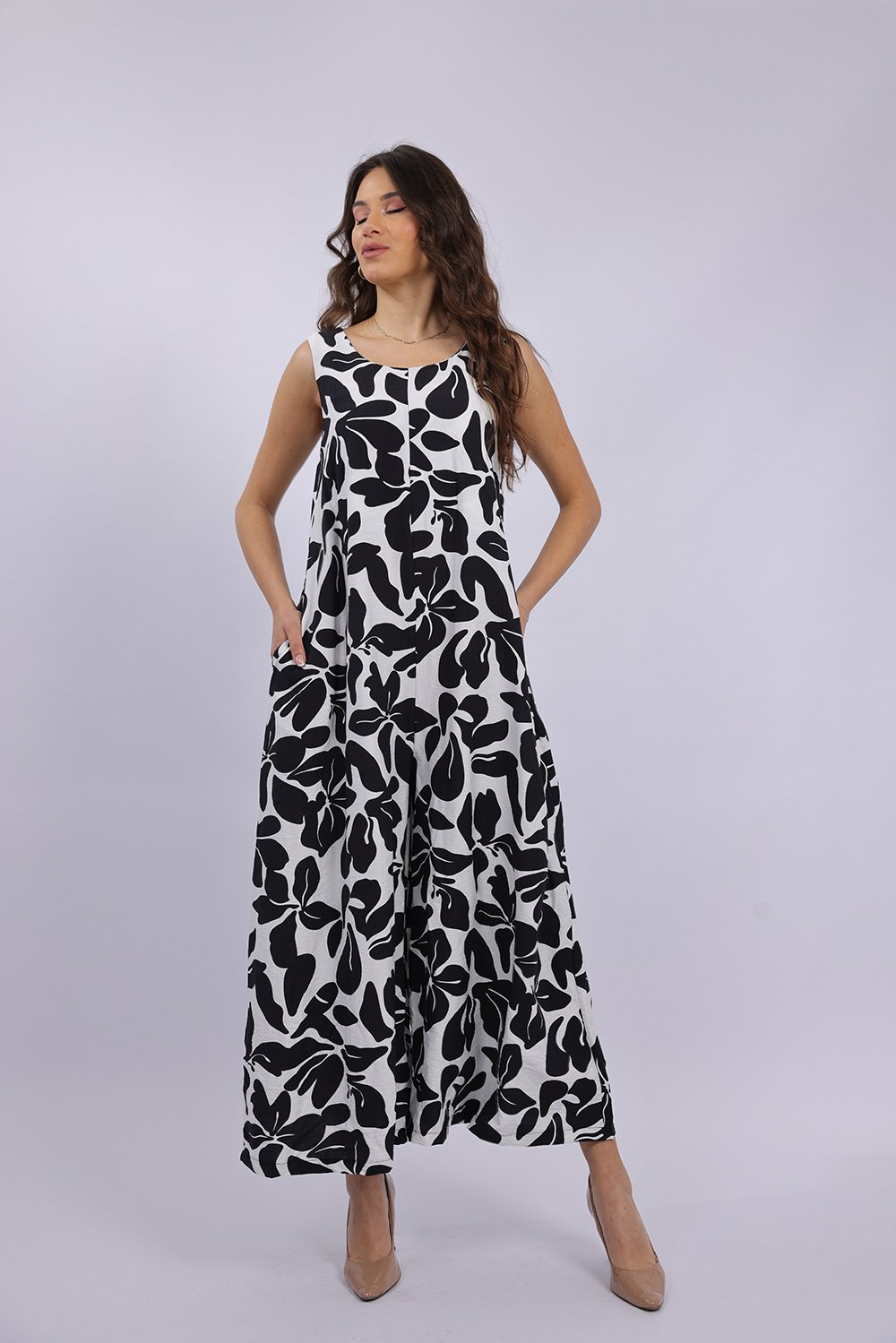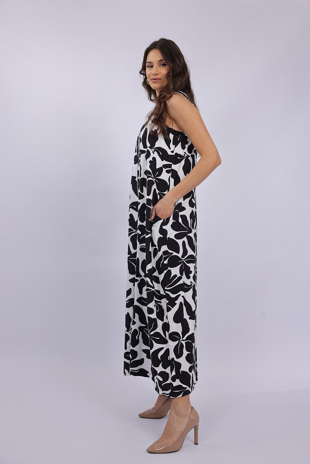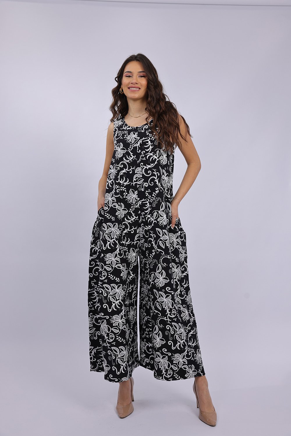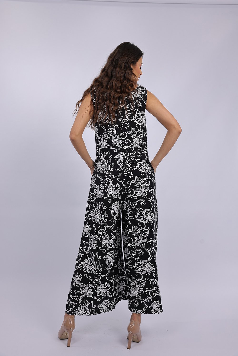 Combinaison élégante à coupe fluide avec imprimé moderne, offrant à la fois confort et style. Sa coupe ample et ses poches ajoutent une touche pratique tout en gardant une allure chic, idéale pour un look tendance au quotidien ou en sortie.