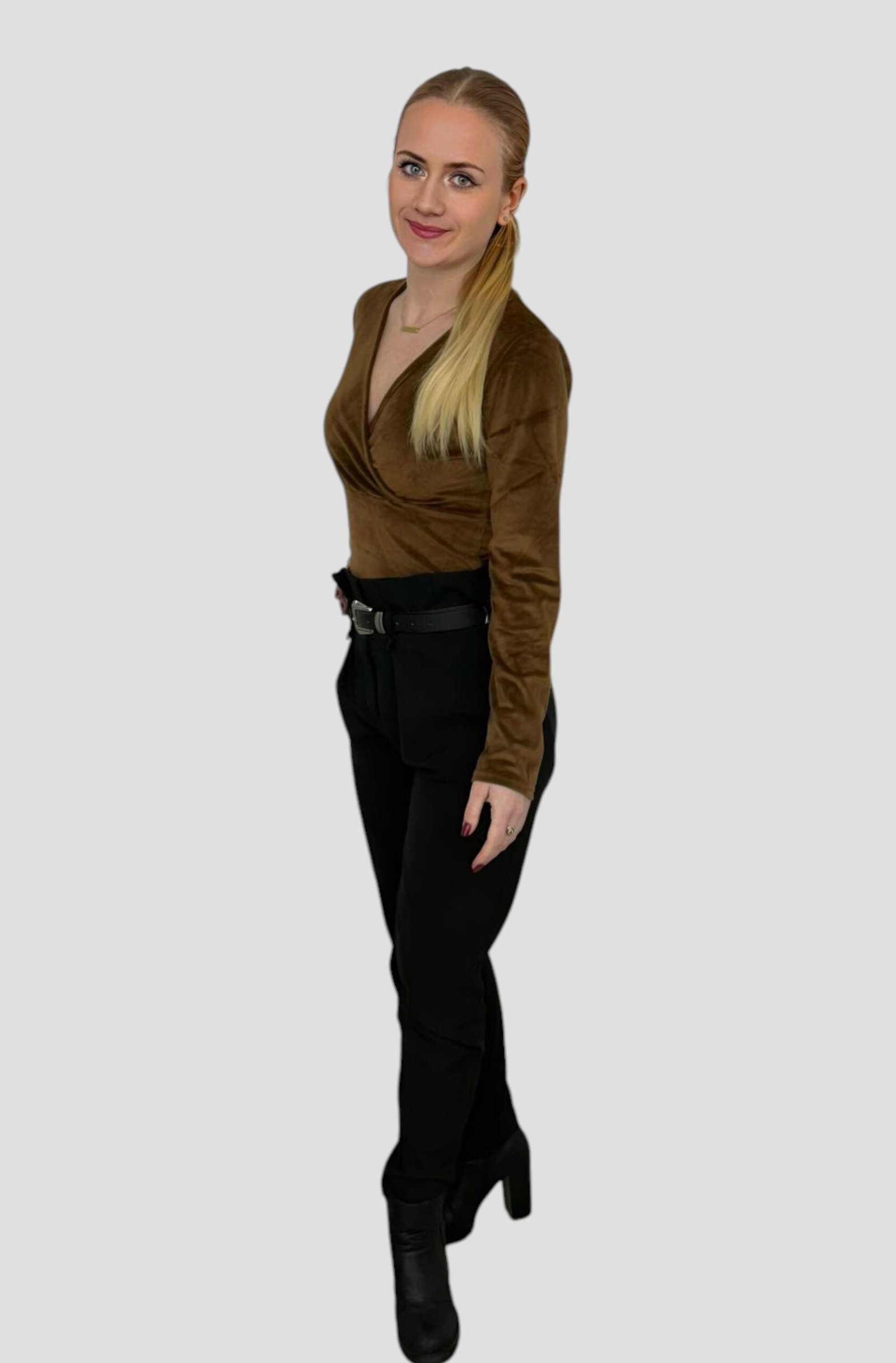 Haut croisé en velours pour femme à manches longues, pour le printemps.