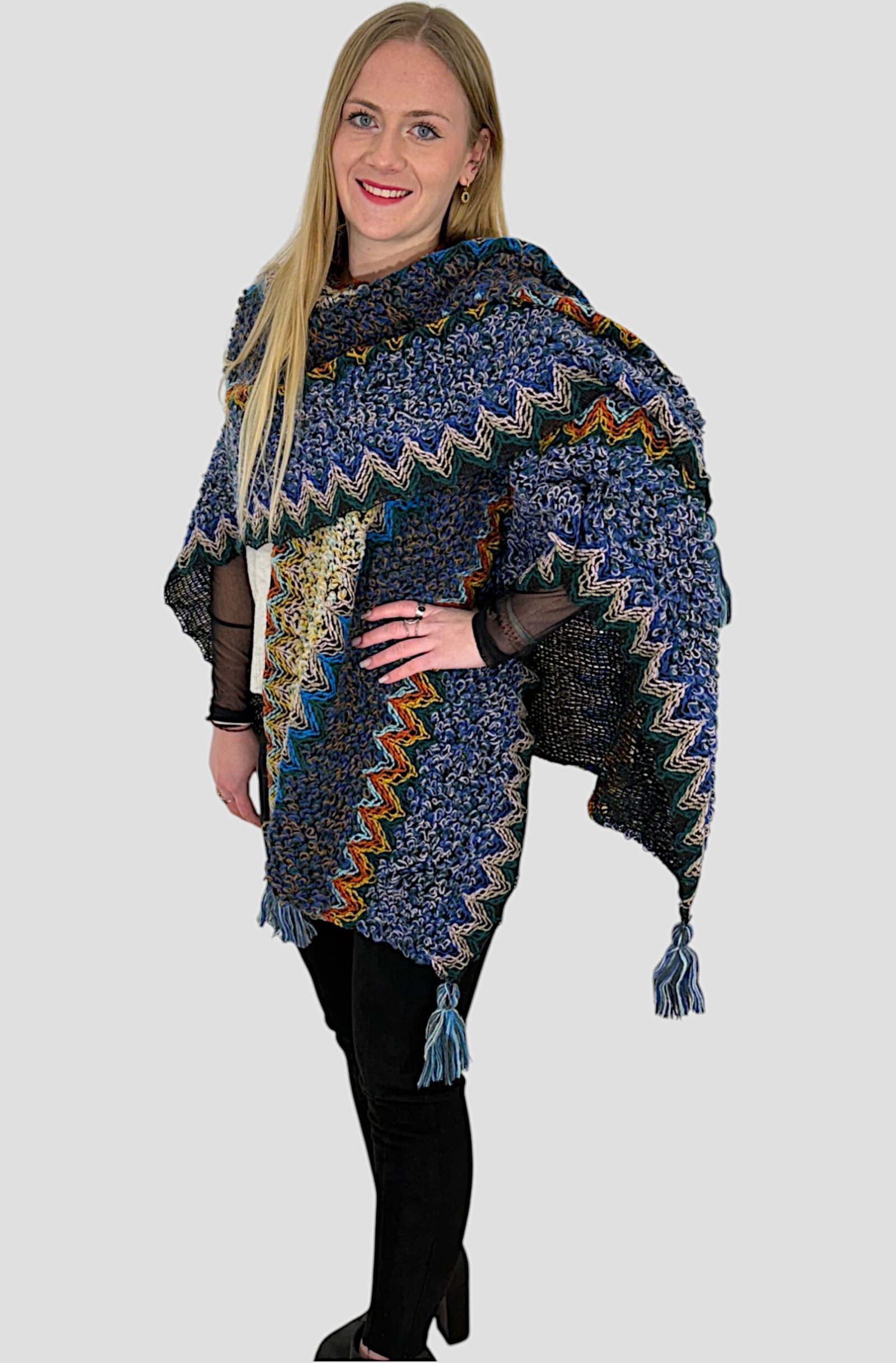 Pancho coloré en alpaga pour femme élégante et décontractée.