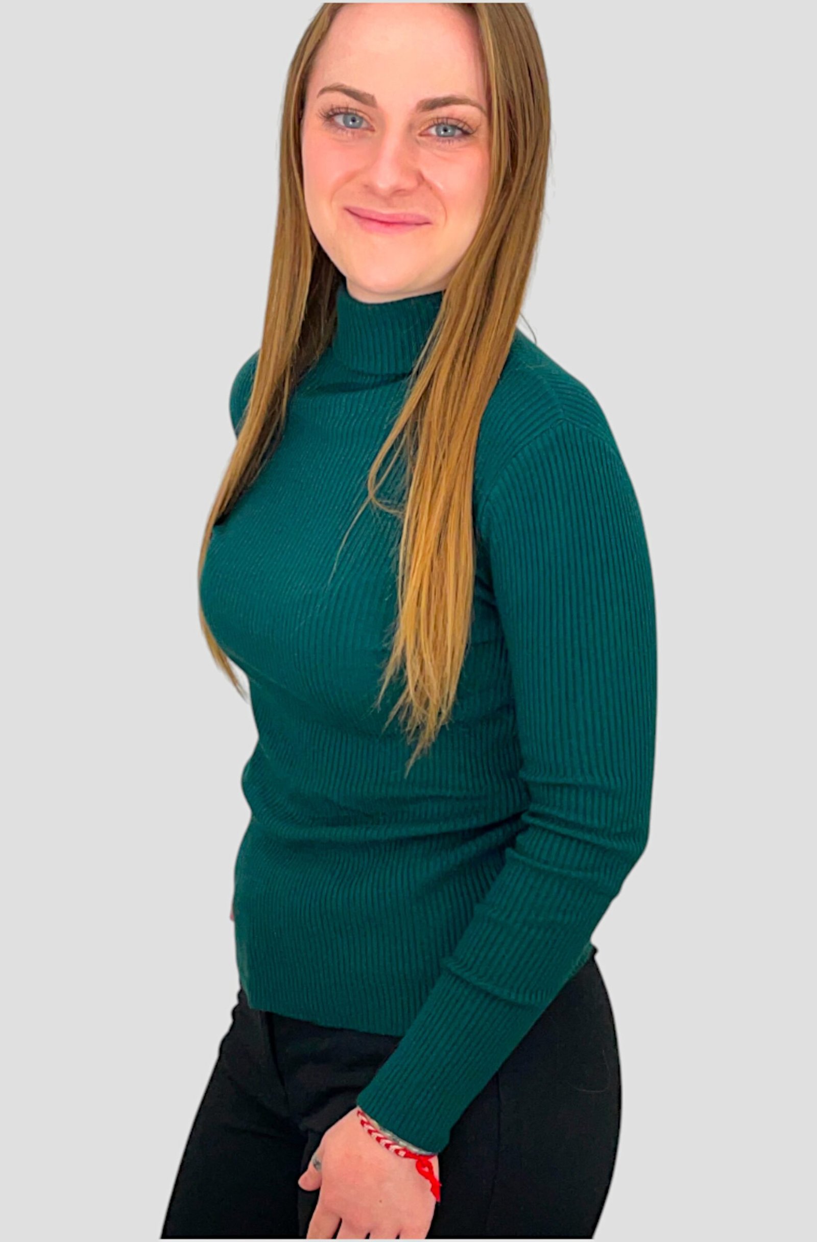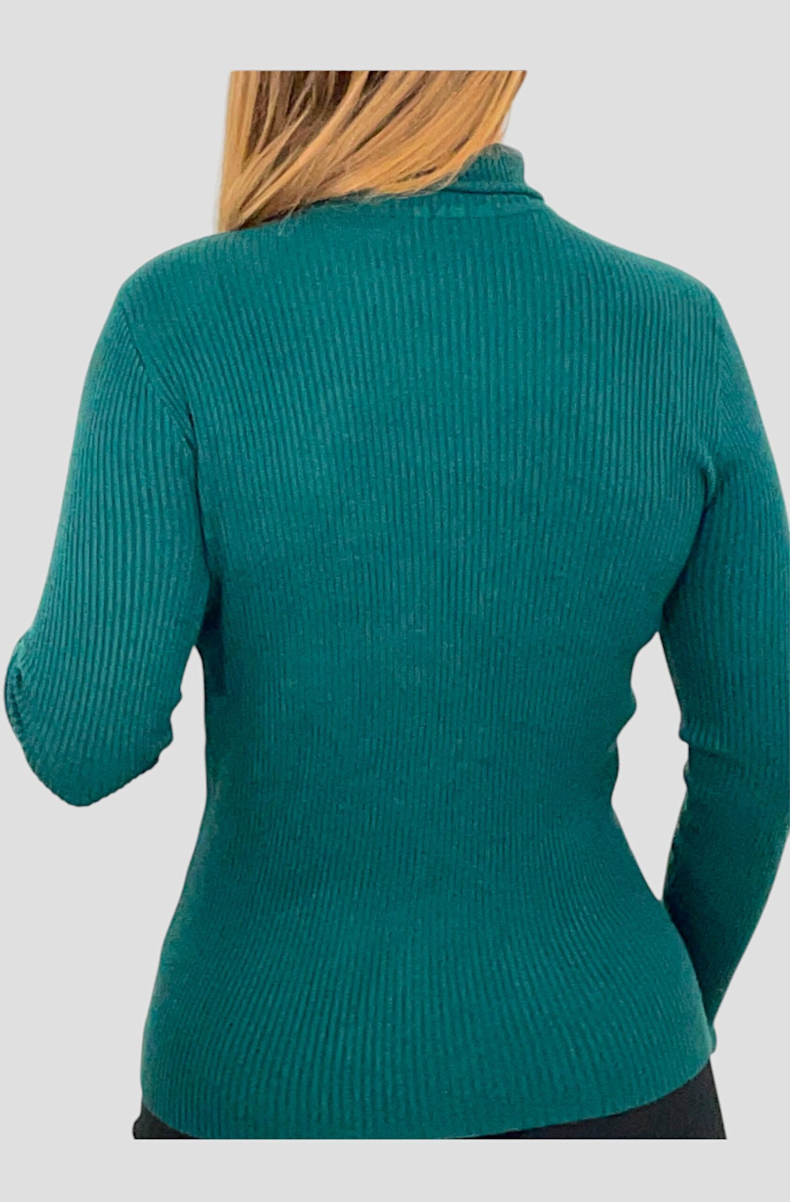Pull stretch en col roulé, côtelé et manches longues