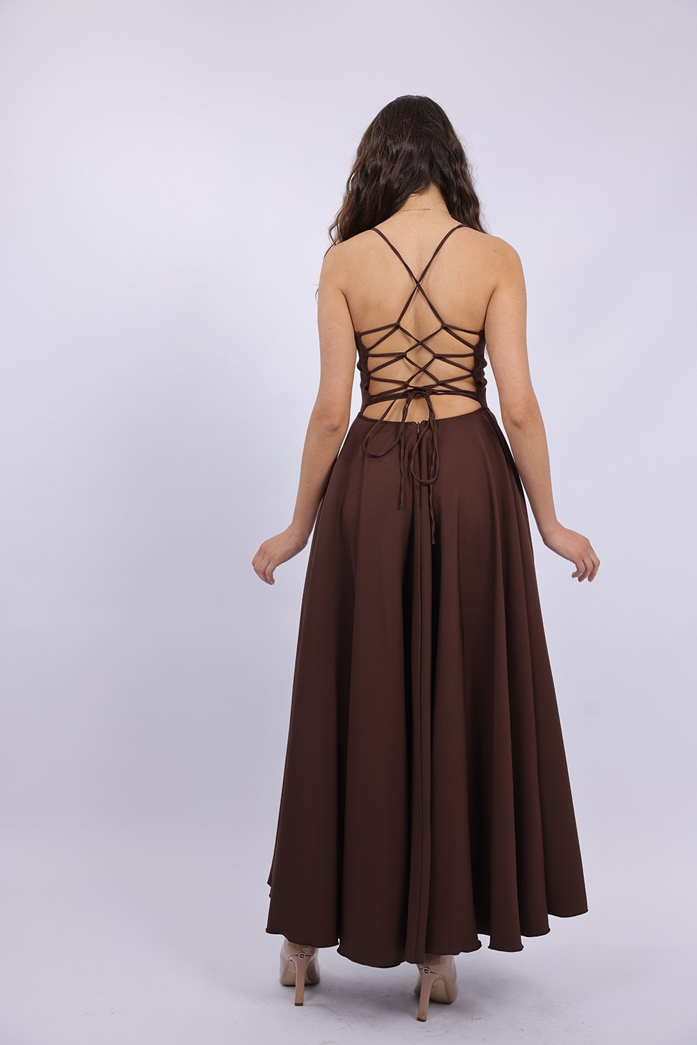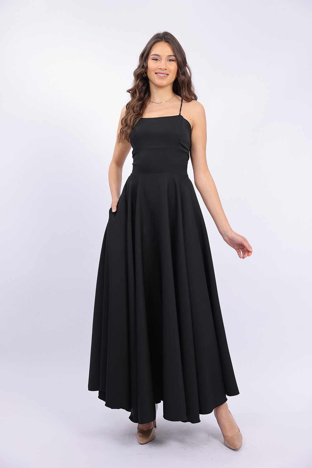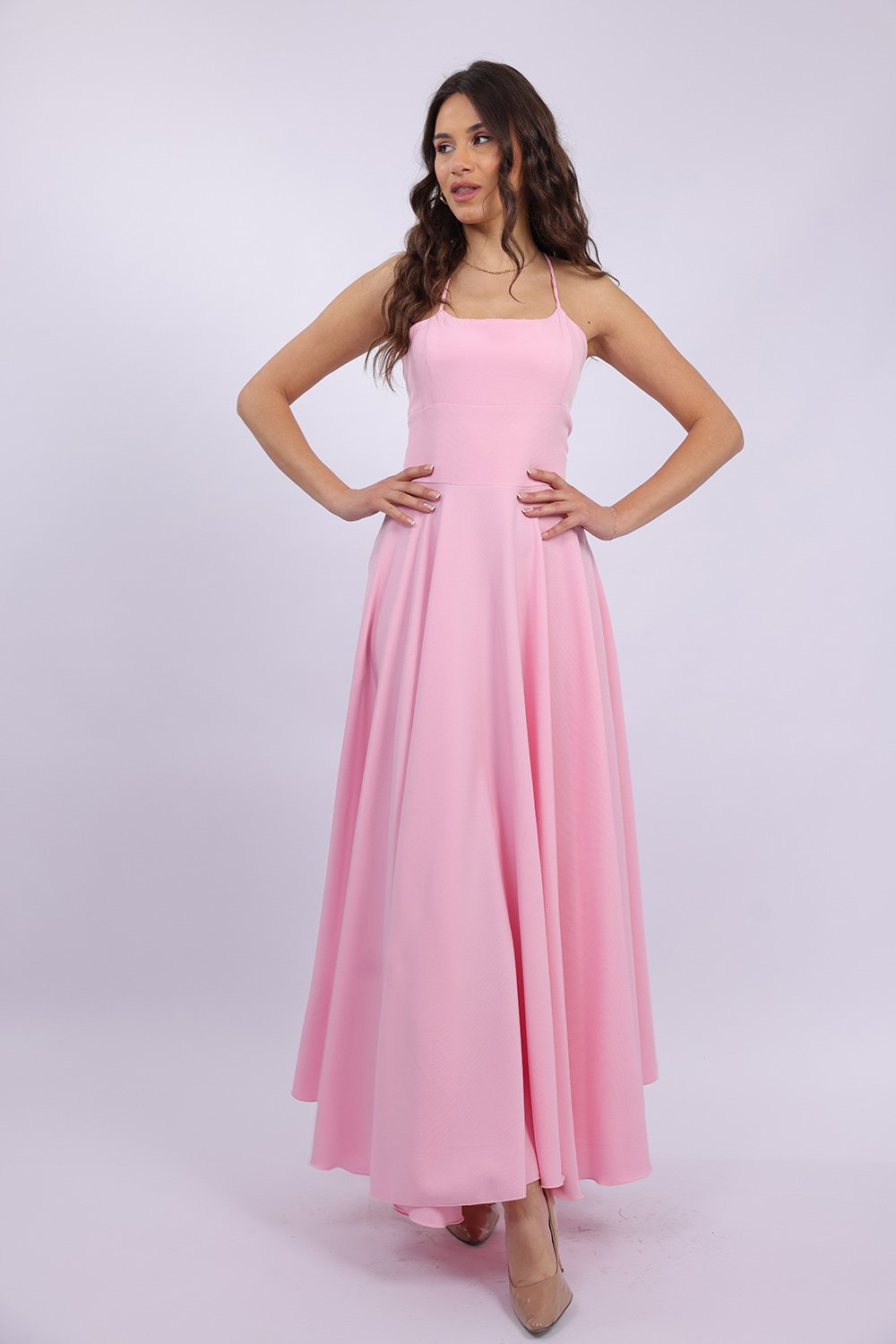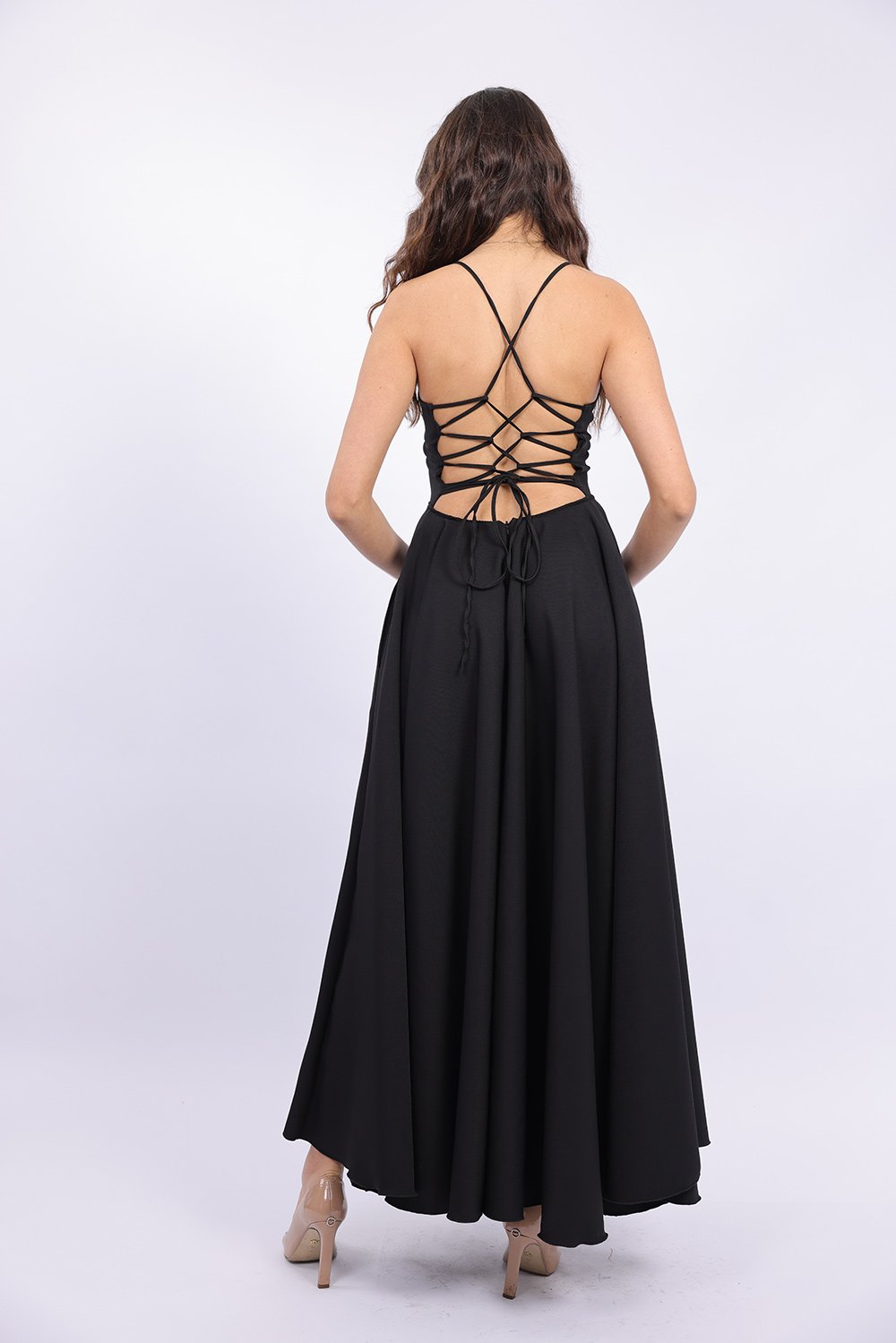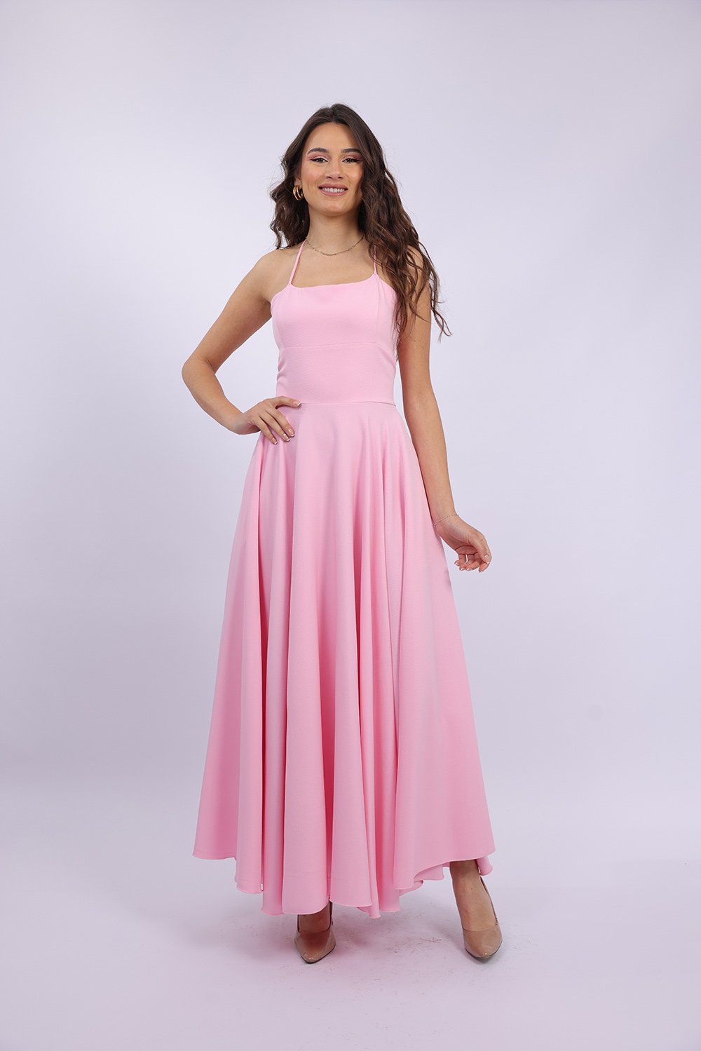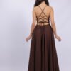 Cette robe longue élégante se distingue par sa coupe fluide et féminine qui sublime la silhouette avec légèreté. Le haut ajusté met en valeur le buste, tandis que la jupe ample apporte un mouvement gracieux à chaque pas. Son dos ouvert avec lacets croisés ajoute une touche sophistiquée et séduisante, tout en permettant un ajustement parfait. Confectionnée dans un tissu agréable et léger, elle est idéale pour vos occasions spéciales, soirées ou événements.