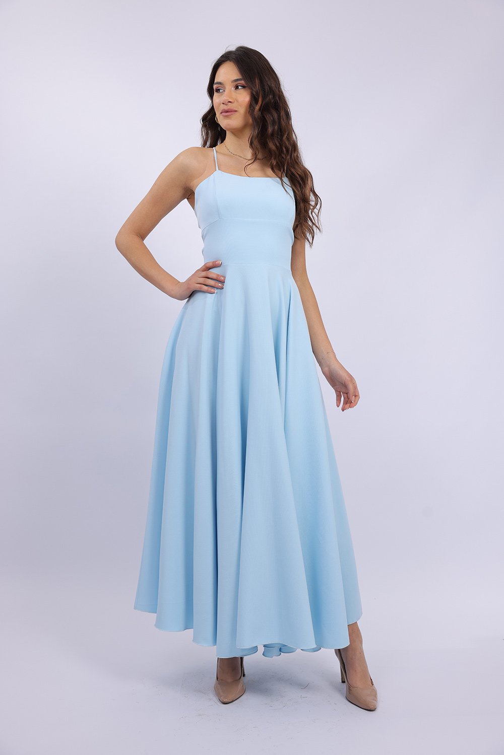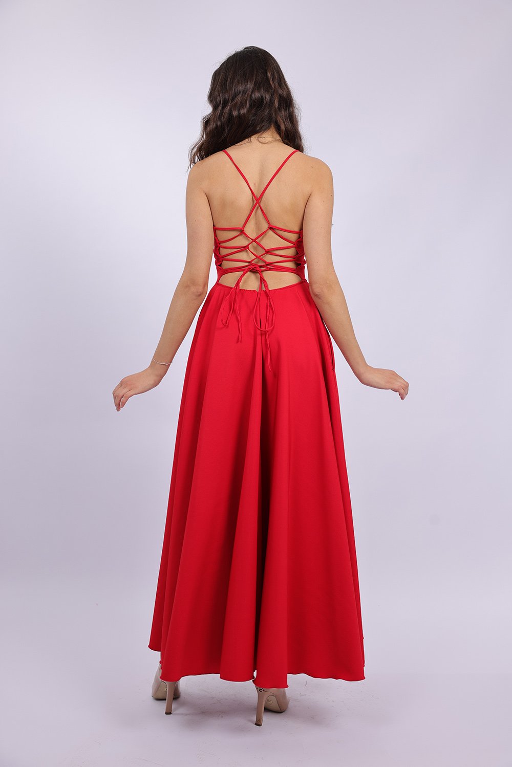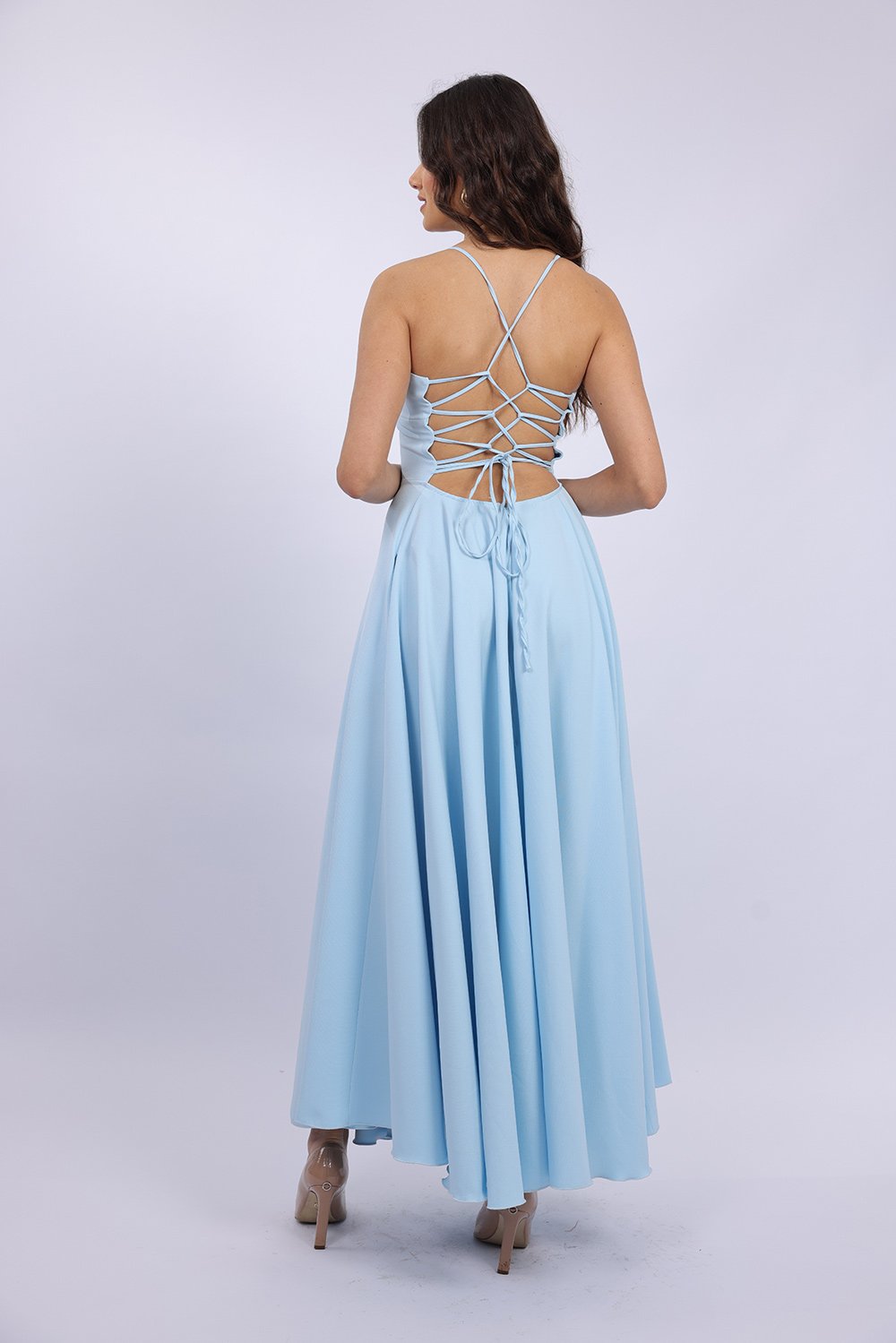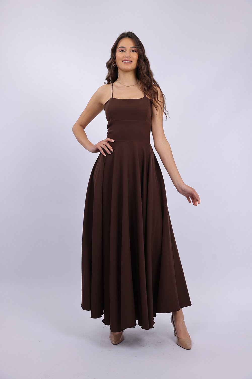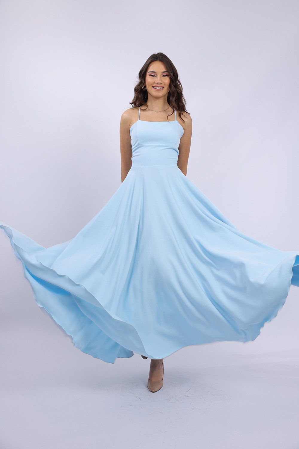 Cette robe longue élégante se distingue par sa coupe fluide et féminine qui sublime la silhouette avec légèreté. Le haut ajusté met en valeur le buste, tandis que la jupe ample apporte un mouvement gracieux à chaque pas. Son dos ouvert avec lacets croisés ajoute une touche sophistiquée et séduisante, tout en permettant un ajustement parfait. Confectionnée dans un tissu agréable et léger, elle est idéale pour vos occasions spéciales, soirées ou événements.