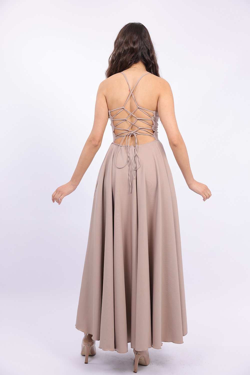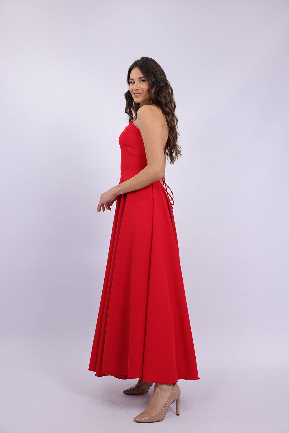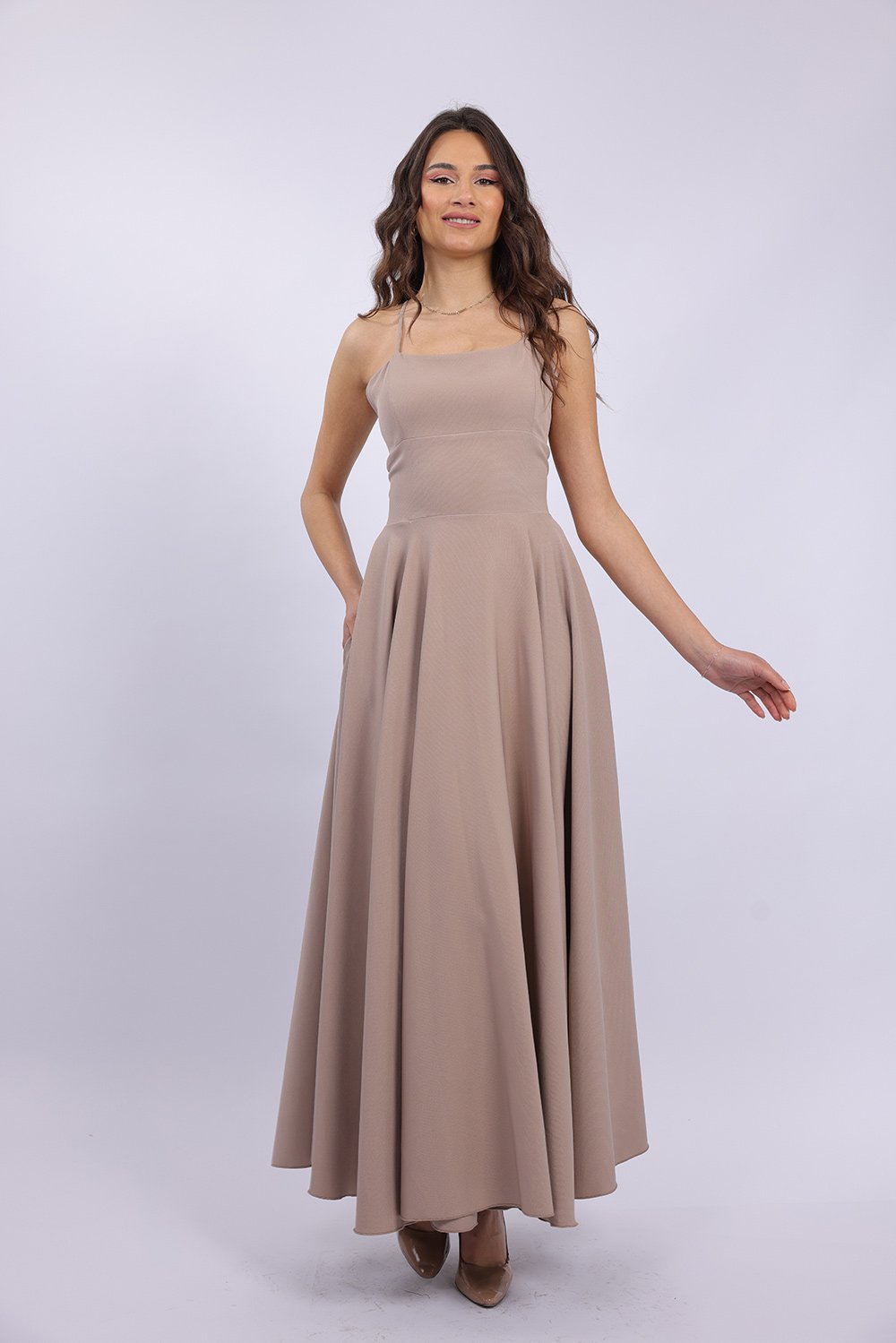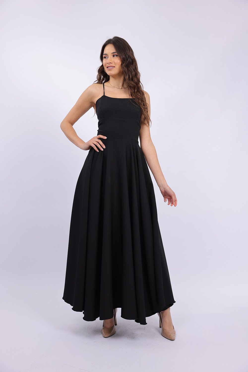 Cette robe longue élégante se distingue par sa coupe fluide et féminine qui sublime la silhouette avec légèreté. Le haut ajusté met en valeur le buste, tandis que la jupe ample apporte un mouvement gracieux à chaque pas. Son dos ouvert avec lacets croisés ajoute une touche sophistiquée et séduisante, tout en permettant un ajustement parfait. Confectionnée dans un tissu agréable et léger, elle est idéale pour vos occasions spéciales, soirées ou événements.