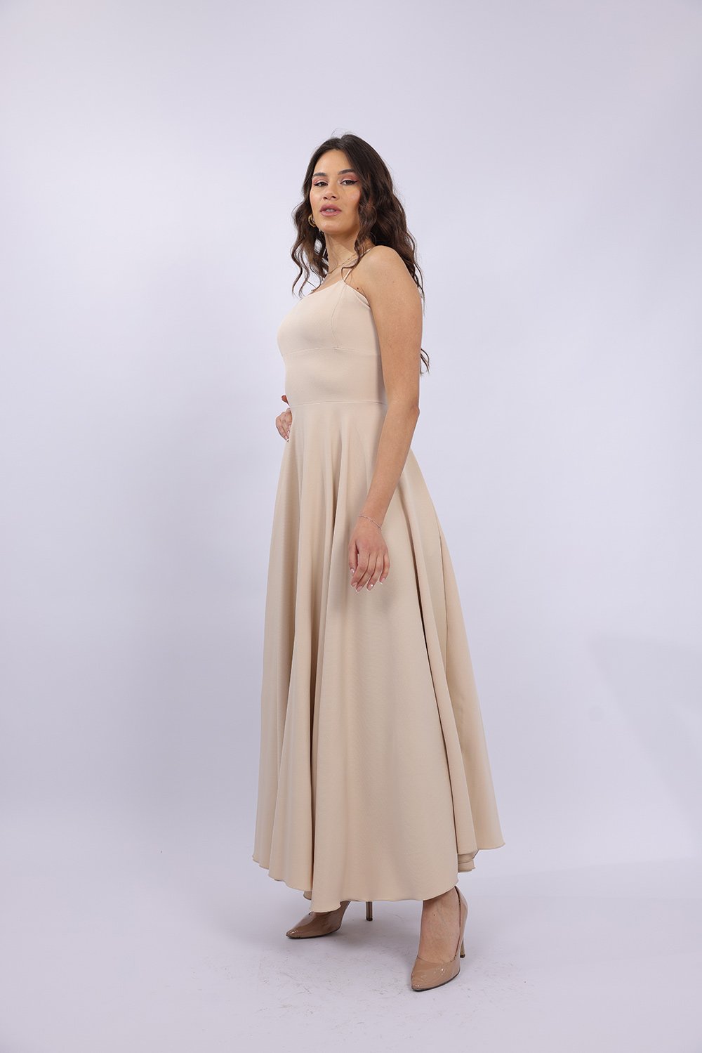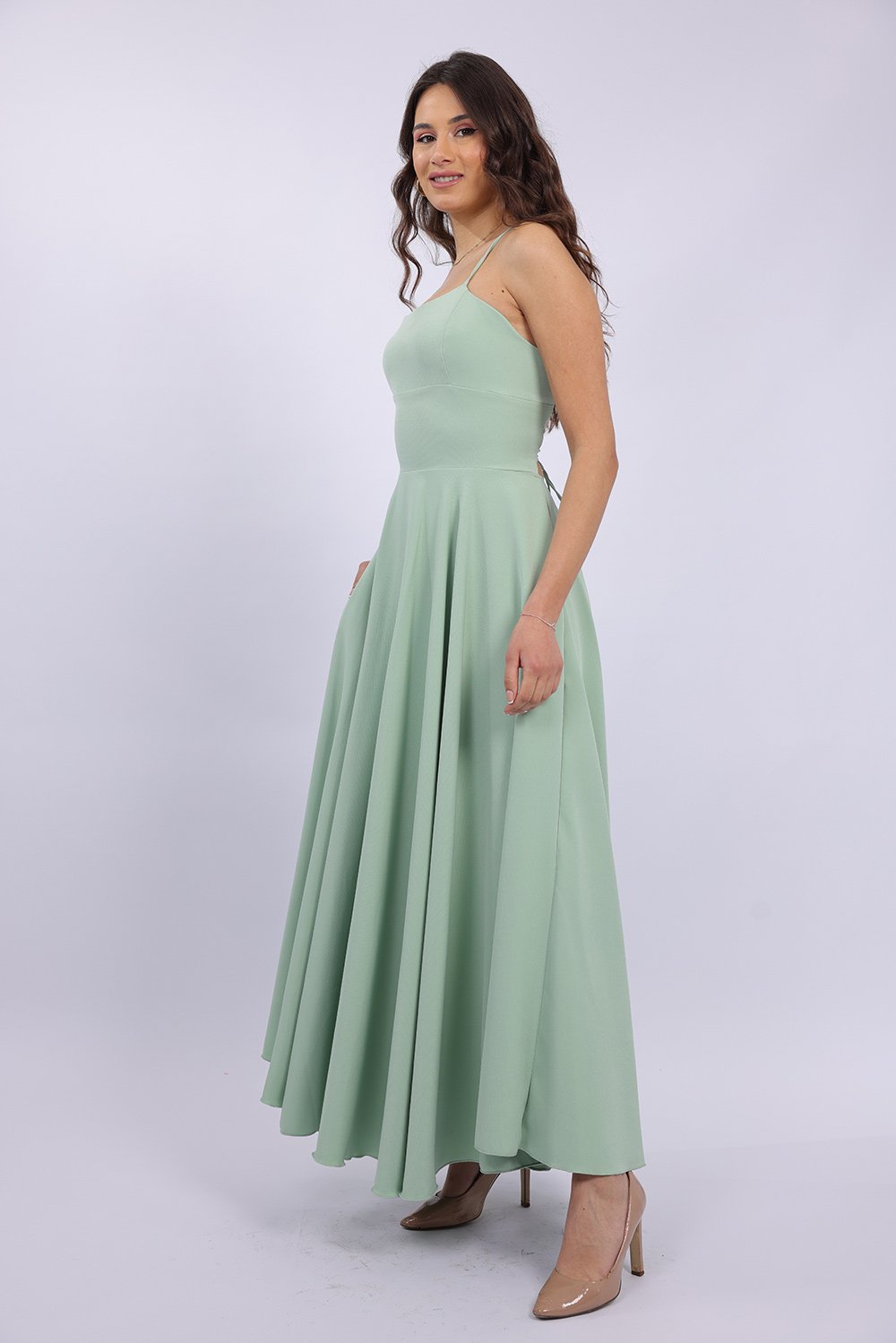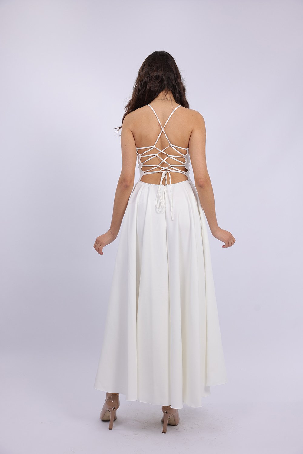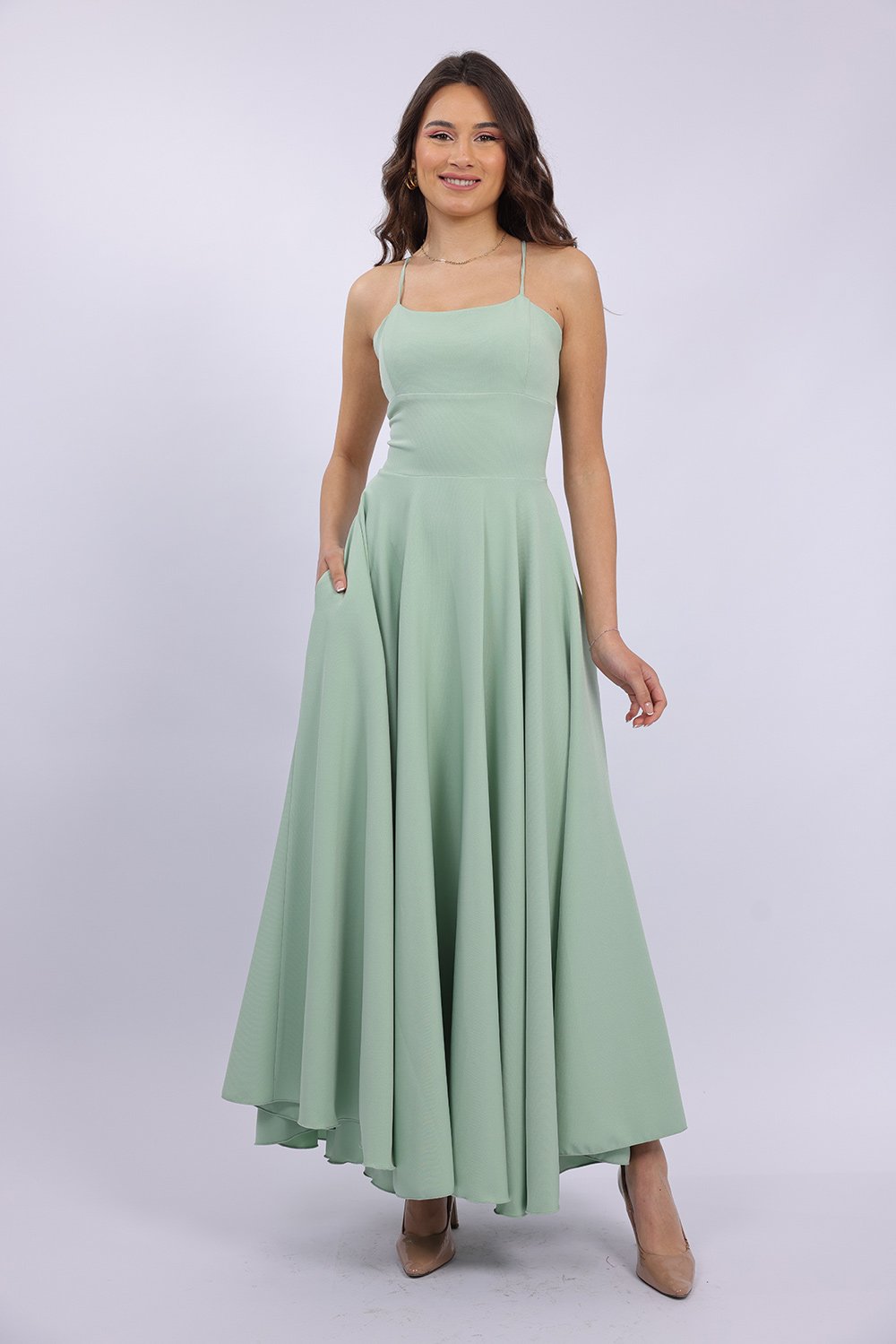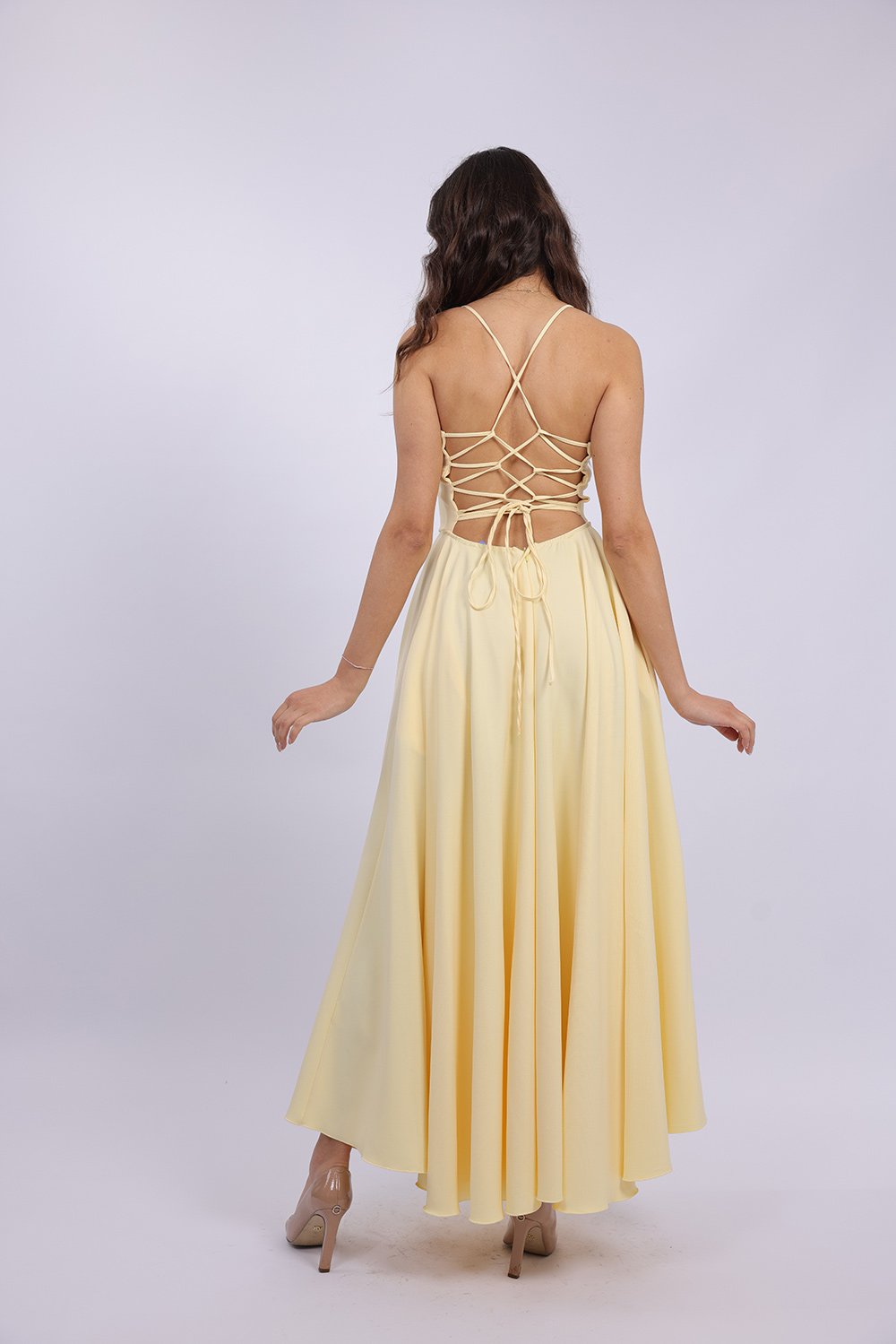 Cette robe longue élégante se distingue par sa coupe fluide et féminine qui sublime la silhouette avec légèreté. Le haut ajusté met en valeur le buste, tandis que la jupe ample apporte un mouvement gracieux à chaque pas. Son dos ouvert avec lacets croisés ajoute une touche sophistiquée et séduisante, tout en permettant un ajustement parfait. Confectionnée dans un tissu agréable et léger, elle est idéale pour vos occasions spéciales, soirées ou événements.