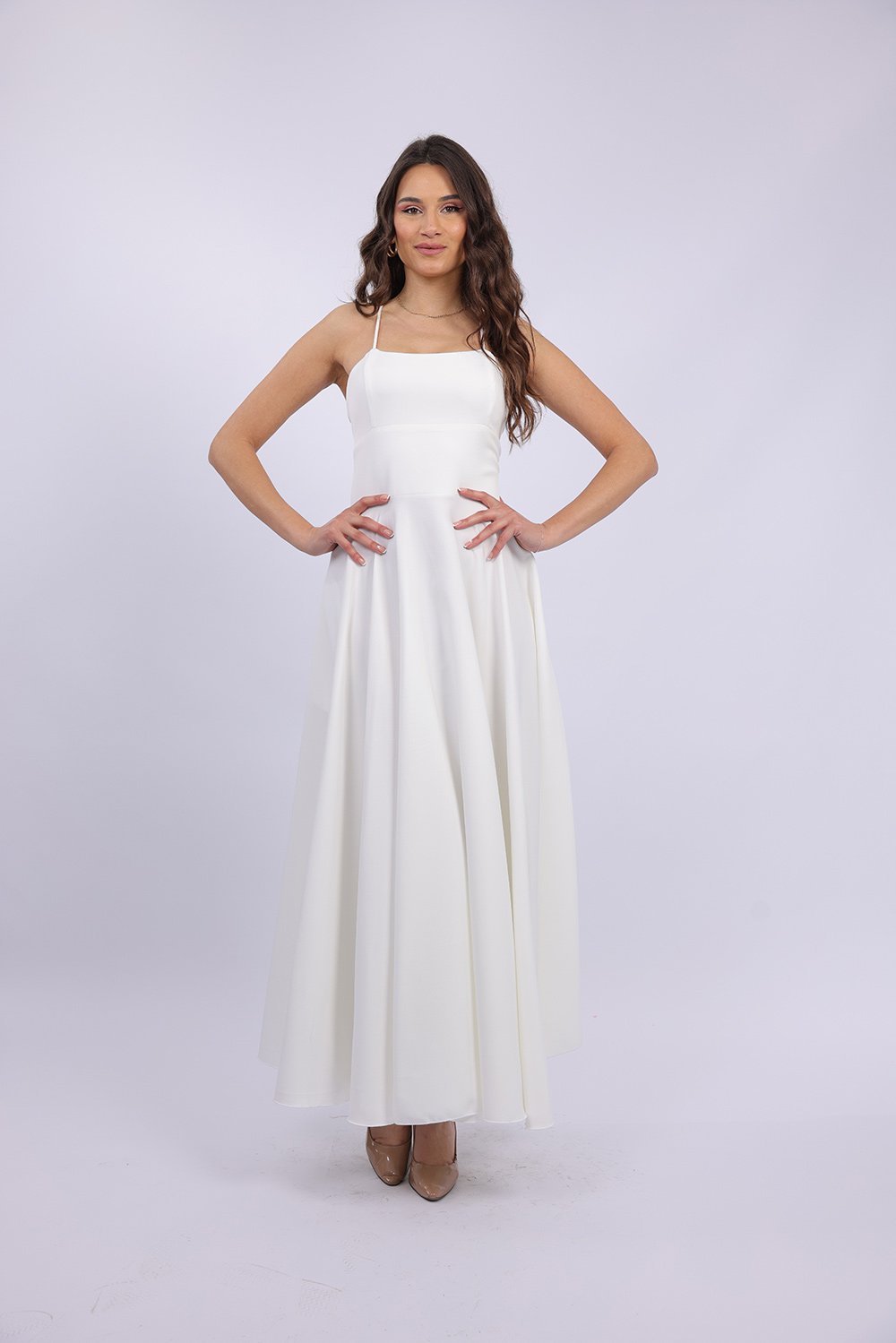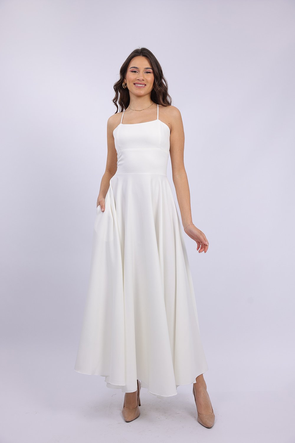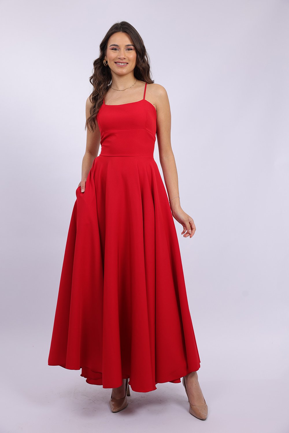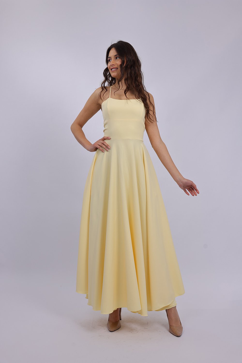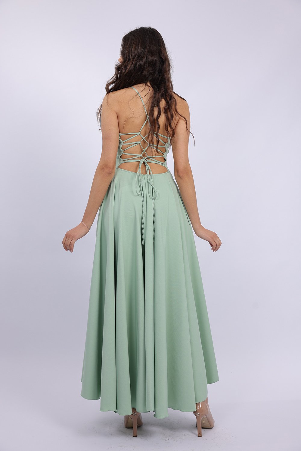 Cette robe longue élégante se distingue par sa coupe fluide et féminine qui sublime la silhouette avec légèreté. Le haut ajusté met en valeur le buste, tandis que la jupe ample apporte un mouvement gracieux à chaque pas. Son dos ouvert avec lacets croisés ajoute une touche sophistiquée et séduisante, tout en permettant un ajustement parfait. Confectionnée dans un tissu agréable et léger, elle est idéale pour vos occasions spéciales, soirées ou événements.